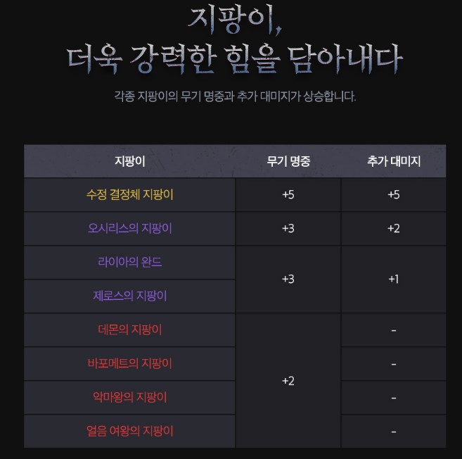 각 지팡이별 무기명중 +2/+3/+5 이며