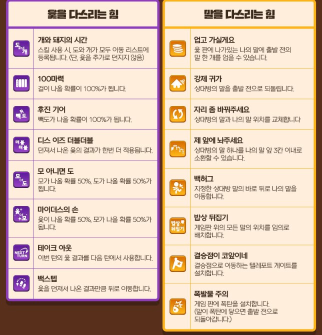 초능력은 내 턴에 한번, 윷을 던지기 전에 사용할 수 있습니다.