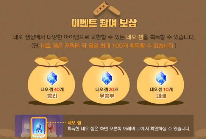 이번에 새로운 네오젬을 얻기 위한 네오이벤트 미니게임