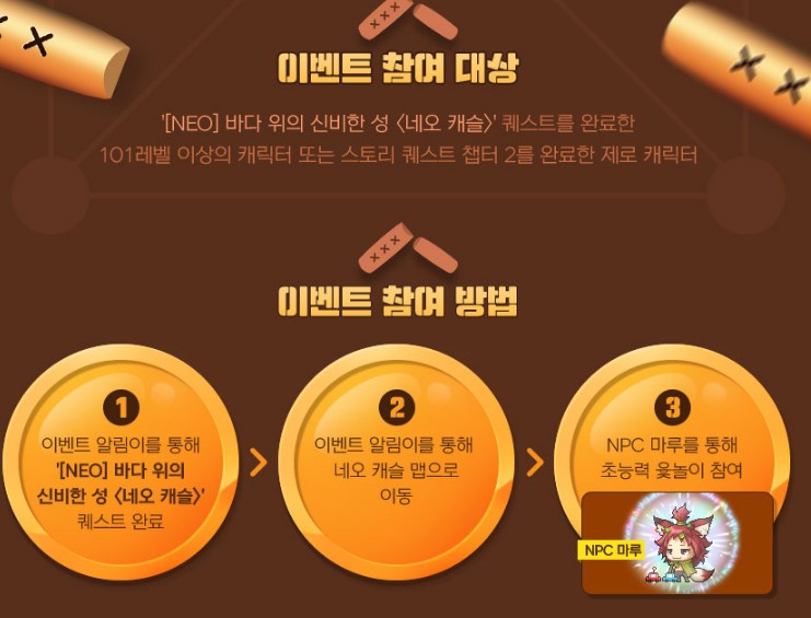 이벤트 참여 대상 : [NEO] 바다 위의 신비한 성<네오캐슬> 퀘를 완료한 101레벨 이상의 캐릭터