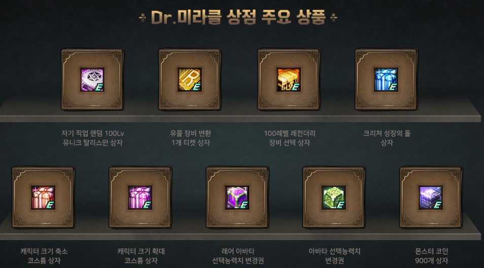 유물 장비 변환 1개 티켓 상자, 몬스터 코인900개 상자등등