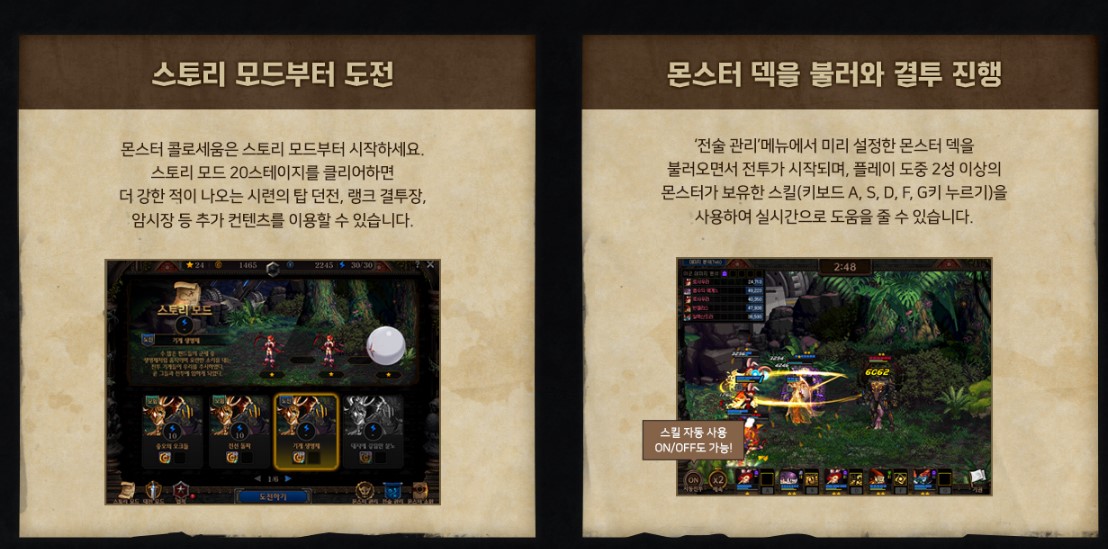 스킬 자동 활용 및 수동활용으로 몬스터가 보유한 스킬로