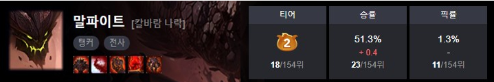 티어/승률/픽률 모두 상위권에 속해 있습니다