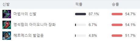 AP메이지 딜러로서 당연히 마법사의 신발 고정입니다.