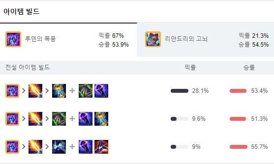 빅토르 신화 아이템 '루덴의 폭풍 or 리안드리 고뇌' 빌드입니다