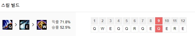 맨 처음에 Q,W,E를 골고루 1개씩 찍어주시고 이후에는 Q>E>R>W순으로 마스터 해주세요.
