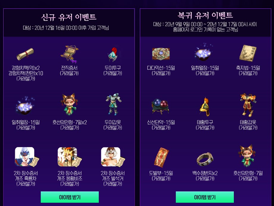 자 그럼 지금부터 거상 2차전직 탈것 시스템 추가 신규 복귀유저 지급보상은?