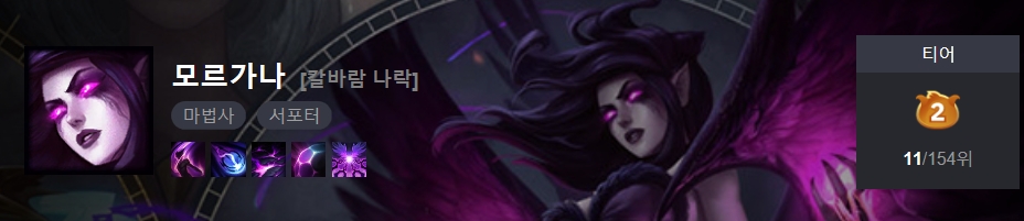 아무래도 원딜의 강세는 모르가나도 피해갈 수 없었나 봅니다.