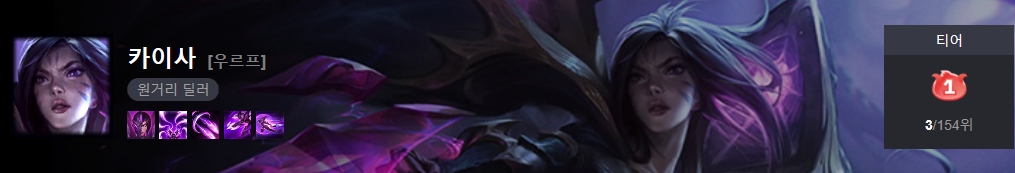 카이사는 현재 우르프모드에서 3위를 할 정도로 사기적인 입지를 가지고 있습니다.