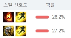 스펠은 점화보다는 탈진을 추천드립니다. 탈진을 쓰면 적 이속이 느려져 E를 맞추기 쉬워집니다.