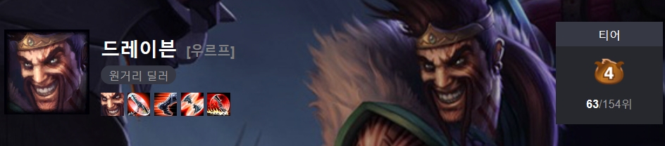 드레이븐은 63위로 생각보다 높진 않은 성적을 보여주고 있습니다. 이유는 드레이븐이