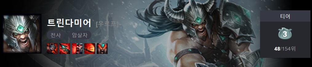 우르프 트린다미어는 현재 48위로 중상위권 챔피언이지만 뚜벅이 트린다미어의