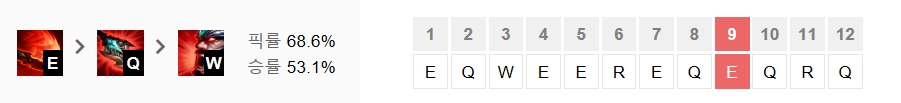 우르프 트린다미어의 스킬트리입니다. E와 Q를 마스터하고 W를 나중에 찍어줍시다.