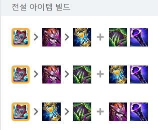 칼바람 하이머딩거의 아이템트리는 리안드리와 악마의 포옹을 필두로하는