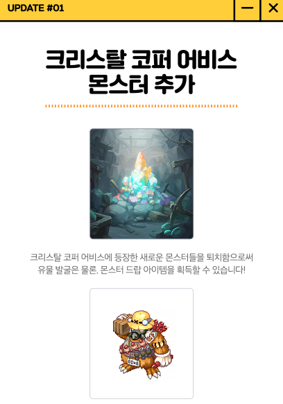 오늘은 트릭스터M 업데이트! 크리스탈 코퍼 어비스에 강력한 몬스터 등장! 포스팅을 해볼게요.