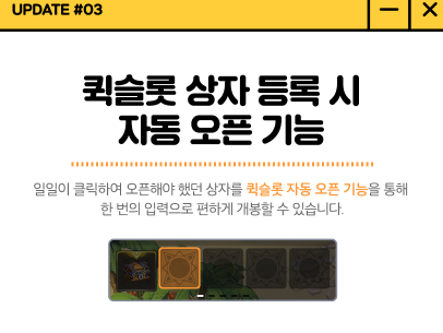 일일이 클릭하여 오픈해야 했던 상자를 퀵슬롯 자동 오픈 기능을 통해