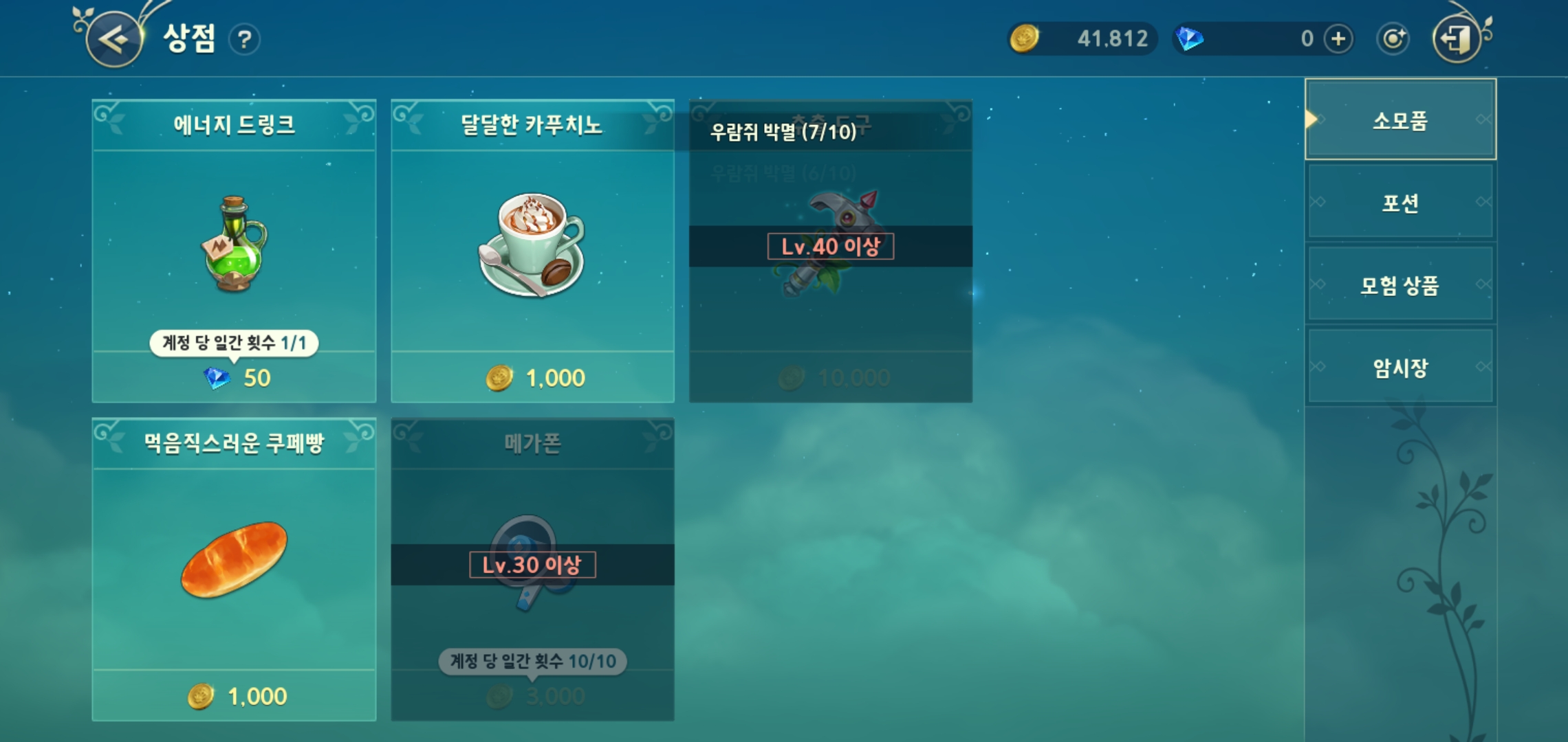 2.메뉴에서 각종 소모품 구입하기