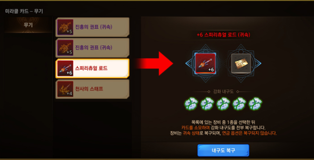 강화 내구도를 전부 복구할 수 있습니다.