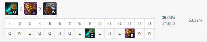 다음은 E스킬을 마스터 해줍니다. 단일 타켓 에어본스킬 이기 때문에 Q스킬과의 연계가 좋고 에어본 상태로 만들기 때문에 좋은 스킬입니다.