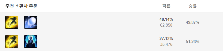 표식의 활용도가 높아 점멸 + 표식을 고정으로 들어줍니다.