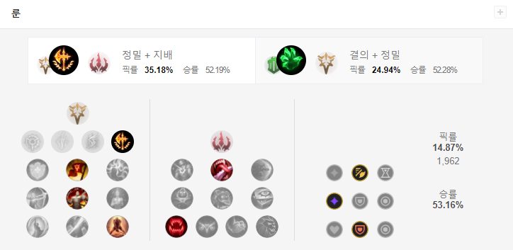 칼바람 요릭 룬은 정밀 + 지배를 선택합니다.