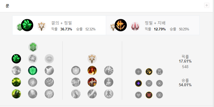 칼바람 트런들 룬은 결의 + 정밀을 선택합니다.