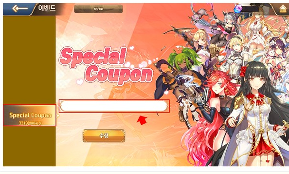 인게임 이벤트 → 스페셜 쿠폰에서 쿠폰 코드 입력