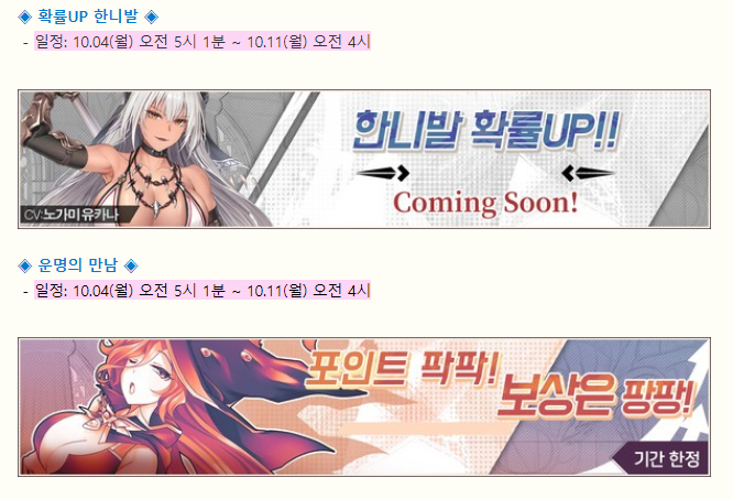 이번엔 앞으로 열릴 다양한 이벤트 정보를 알아보겠습니다.