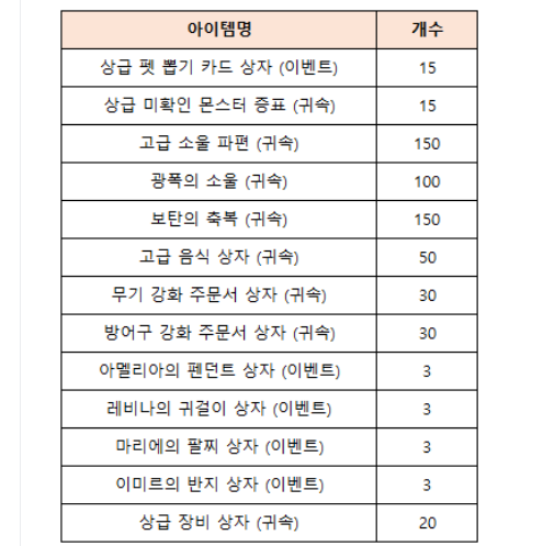 잊혀진 기사단의 보급품 상자 구성품으로는