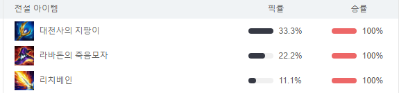 픽률은 낮지만 승률은 높은 챔피언입니다.