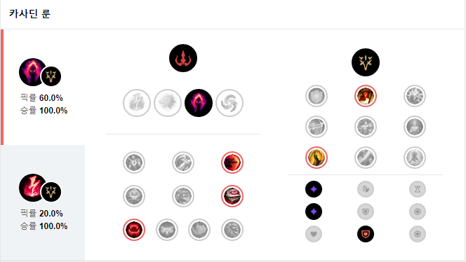 우르프 카사딘 룬은 지배 + 정밀을 선택합니다.