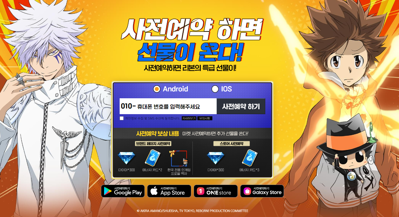 이상으로 신작 모바일 게임 가정교사 히트맨 리본 사전예약 보상 정보!! 출시일은 언제??