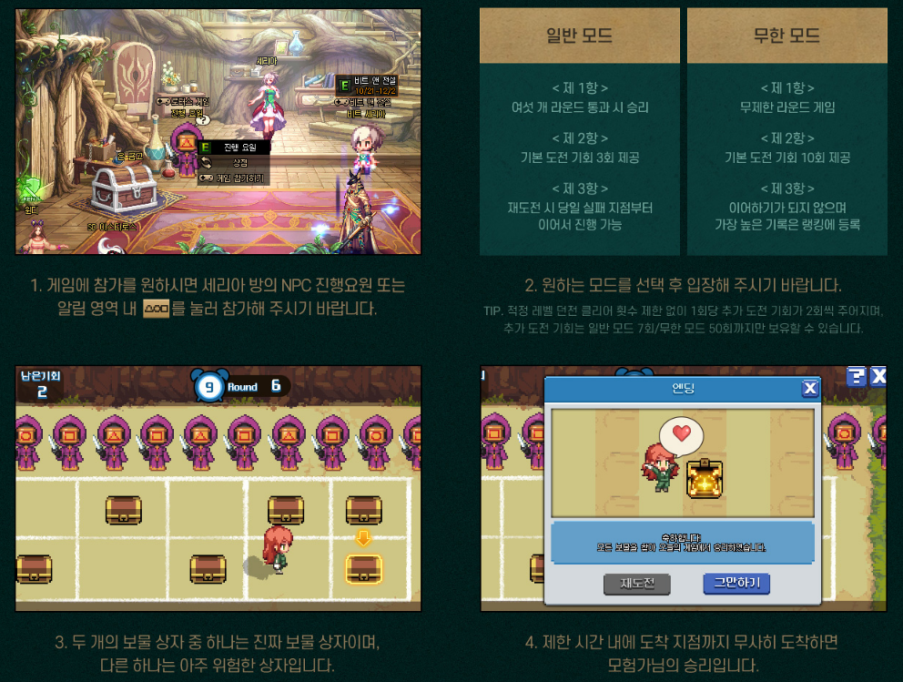 던전앤파이터 비트 앤 전설 로터스 게임은 2개중 1개인 진짜 보물 상자를 찾아 로터스 코인 1개를 획득하고