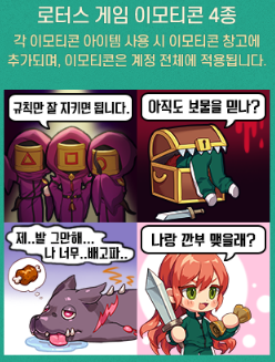 로터스 게임 이모티콘 4종 각 로터스 코인 10개 (계정당 1회 구매 가능)
