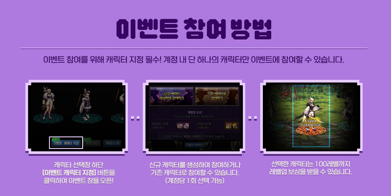 신규 캐릭터를 생성하여 참여하거나 기존 캐릭터로 참여할 수 있습니다 (계정당 1회 선택 가능~)
