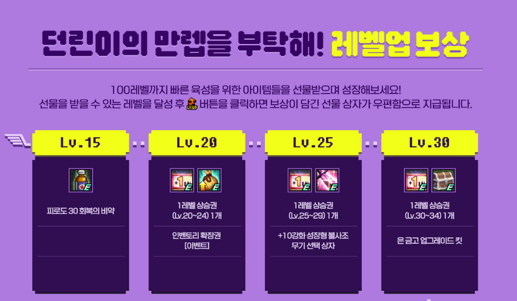 던린이들 여기모여!! 빠르게 최고 레벨 100까지 쉽게 달성할 수 있는 육성 이벤트