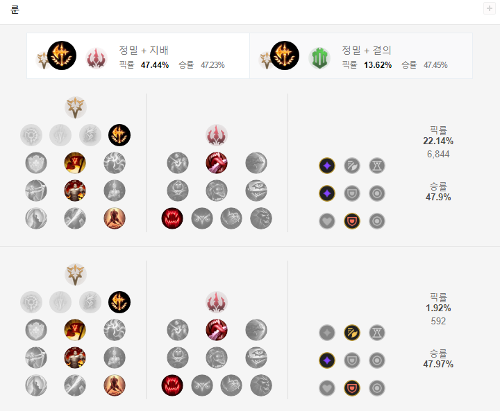 칼바람 우르곳의 룬은 정밀+지배를 선택합니다.