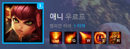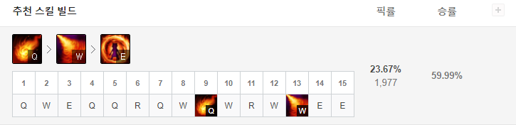 칼바람 애니의 스킬트리는 Q > W > E 순으로 마스터하면됩니다.