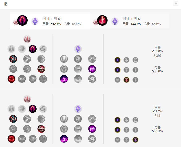 칼바람 애니의 룬은 지배 + 마법 입니다.