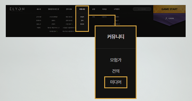 엘리온 홈페이지 > 커뮤니티 > 미디어 게시판을 클릭하고