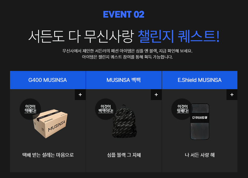 무신사에서 제안한 서든러의 패션 아이템을 받을 수 잇는 챌린지 퀘스트!