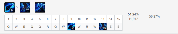 Q > W > E 순으로 스킬 마스터해주시면 됩니다.