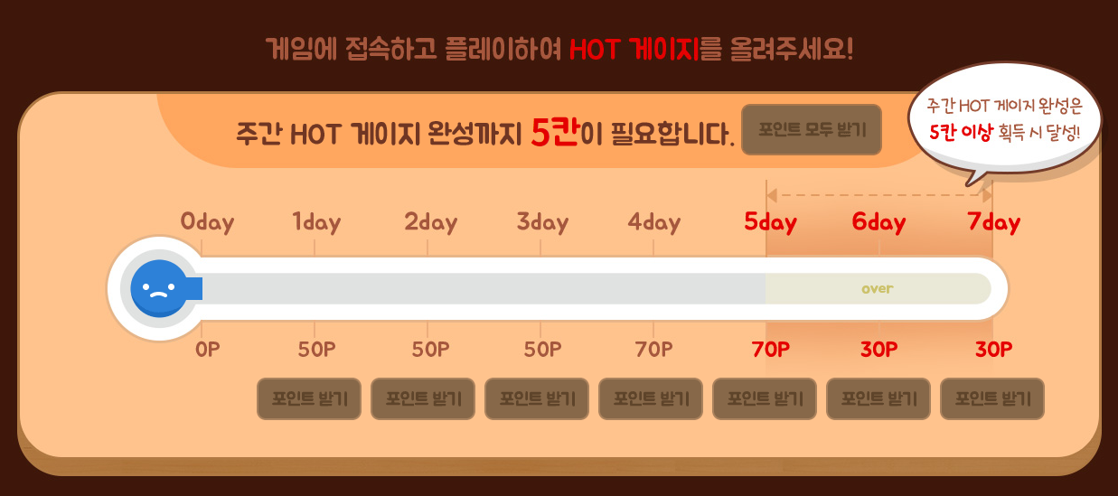 주간 HOT 게이지는 해당 주차의 HOT 게이지를 5칸 이상 획득 시 달성합니다.