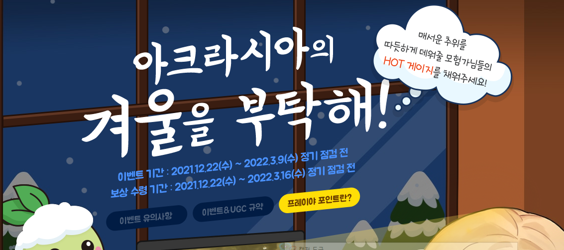 아크라시아의 겨울을 부탁해 이벤트는 매일 로아 플레이하고 HOT게이지와 프레이야 포인트를 획득해