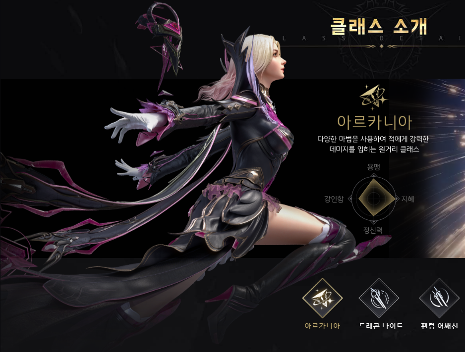 다양한 마법을 사용하여 적에게 강력한 대미지를 입히는 원거리 클래스 아르카니아