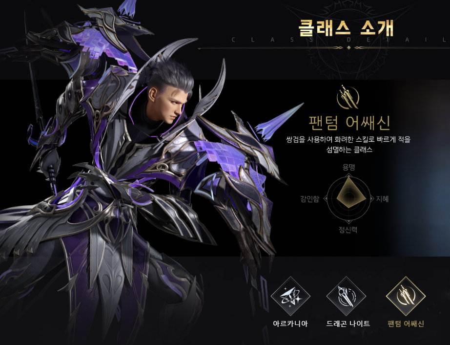 쌍검을 사용하여 화려한 스킬로 빠르게 적을 섬멸하는 클래스 팬텀 어쌔신