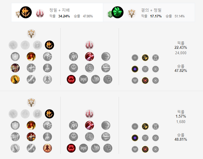 정밀은 정복자 > 승전보 > 전설 : 민첩함 > 최후의 일격을 선택합니다.