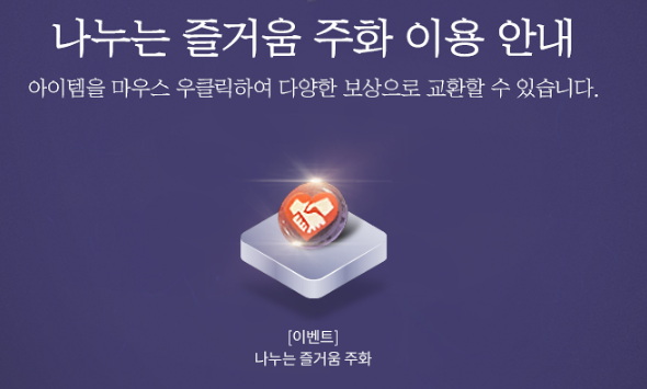 [이벤트] 나누는 즐거움 주화를 우클릭하면 다양한 보상으로 교환할 수 있습니다.