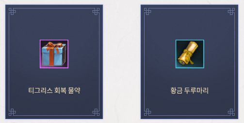 매일매일 티그리스 회복 물약 또는 황금 두루마리 1개를 교환할 수 있습니다.