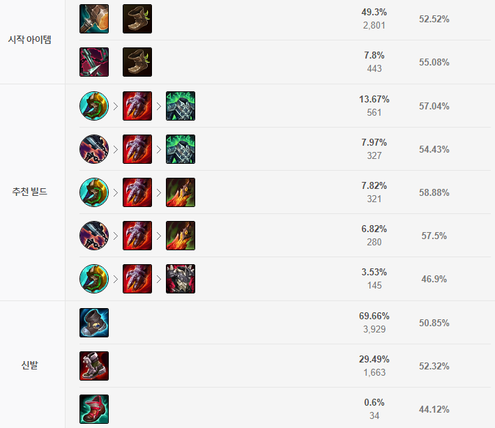 칼바람 일라오이의 시작 아이템은 탐식의 망치 + 장화를 구매하고 시작합니다.